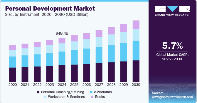 Personal Development Market (2025 - 2030) Size, Share & Trends Analysis Report By Instrument (Books, e-Platforms, Personal Coaching/ Training, Workshops & Seminars), By Focus Area (Self-awareness, Skillset Enhancement), By Region, And Segment Forecasts