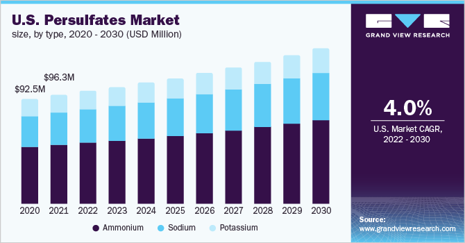b. The global persulfates market is expected to grow at a compound annual growth rate of 3.5% from 2022 to 2030 to reach USD 1.10 billion by 2030.
