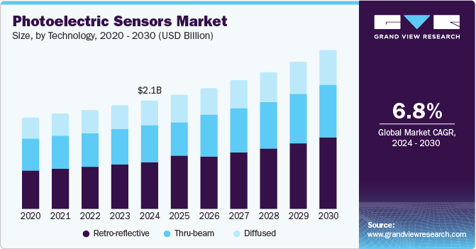 Photoelectric Sensors Market (2025 - 2030) Size, Share & Trends Analysis Report By Technology (Diffused, Retro-Reflective, Thru-Beam), By End-use (Automotive, Military & Aerospace, Electronics & Semiconductor, Packaging, Others), By Region, And Segment Forecasts