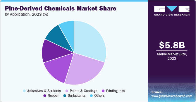 The adhesives & sealants application segment held the largest market share in 2023, accounting for 29.9% of the global market revenue, driven by the growing demand for bio-based adhesives in the construction and packaging industries. Pine-derived chemicals are increasingly used in the production of adhesives and sealants due to their excellent binding properties and environmental benefits.