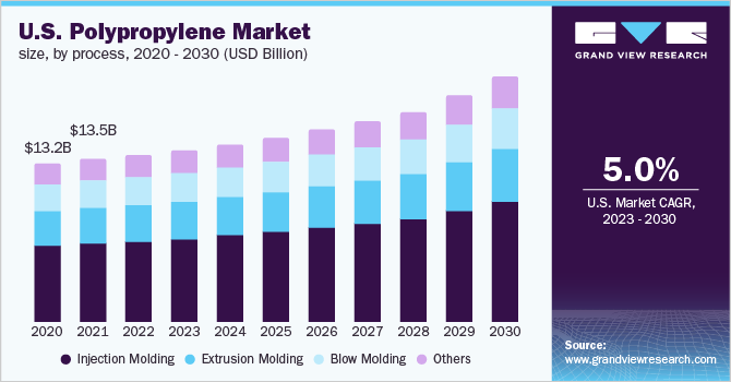 Polypropylene Market (2026 - 2033) Size, Share & Trends Analysis Report By Polymer Type (Homopolymer, Copolymer), By Process (Injection Molding, Blow Molding, Extrusion Molding), By Application (Fiber, Film & Sheet, Raffia), By End Use, By Region, And Segment Forecasts