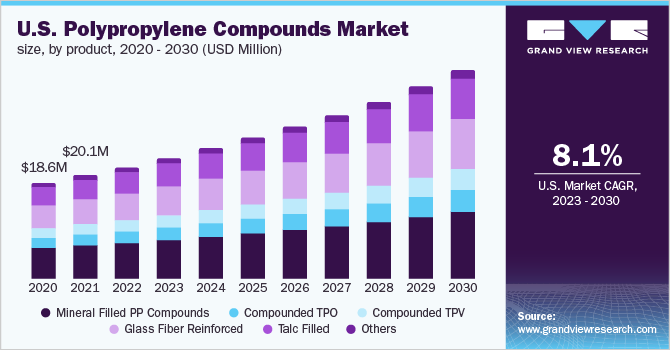 Polypropylene Compounds Market (2024 - 2030) Size, Share & Trends Analysis Report By Product (Mineral Filled, Compounded TPO, Compounded TPV, Glass Fiber Reinforced, Talc Filled), By Application, By End-use, By Region, And Segment Forecasts