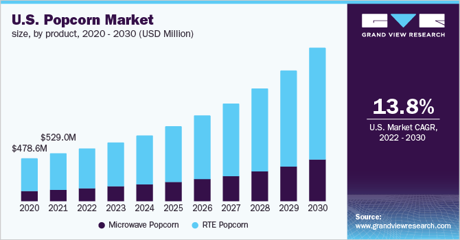 - The popcorn industry in the U.S. is expected to grow at a CAGR of 7.9% from 2026 to 2033.