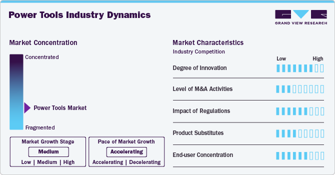 The threat of substitutes in the power tools market remains moderate, primarily influenced by the availability of manual tools and outsourcing services. While manual tools are less efficient and labor-intensive, they may appeal to budget-conscious or infrequent users. In addition, some consumers may opt to hire professionals instead of investing in expensive power tools, particularly for specialized tasks. However, the increasing affordability, versatility, and user-friendliness of modern power tools continue to mitigate these threats, especially as DIY culture and home improvement trends gain traction.