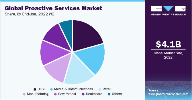 The global proactive services market size was valued at USD 4.15 billion in 2022 and is expected to grow at a compound annual growth rate (CAGR) of 20.8% from 2023 to 2030. The growing trend of understanding customer expectations & buying patterns, adoption of smartphones & tablets, and high usage of the internet, e-commerce websites & shopping applications are a few factors contributing to the growth of this market. Although the COVID-19 pandemic has overturned the way organizations have embraced their work, allowing employees to manage significant disturbances in worldwide supply chains. The pandemic caused stronger digitalization initiatives across the globe, it led organizations to acknowledge the disruption and adapt to proactive services to ensure business intelligence and process enhancement.