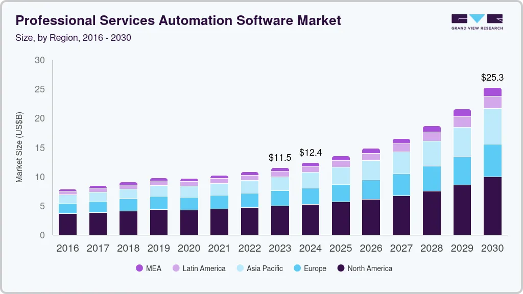 b. The global professional services automation software market size was estimated at USD 12.40 billion in 2024 and is expected to reach USD 13.47 billion in 2025.