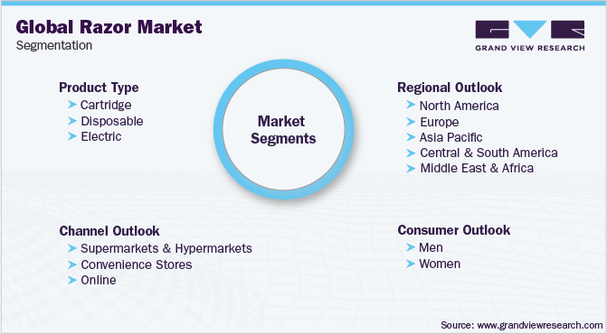 Razor Market (2025 - 2030) Size, Share & Trends Analysis Report By Product (Cartridge, Disposable), By Consumer (Men, Women), By Distribution Channel (Supermarkets & Hypermarkets, Convenience Stores, Online), By Region, And Segment Forecasts