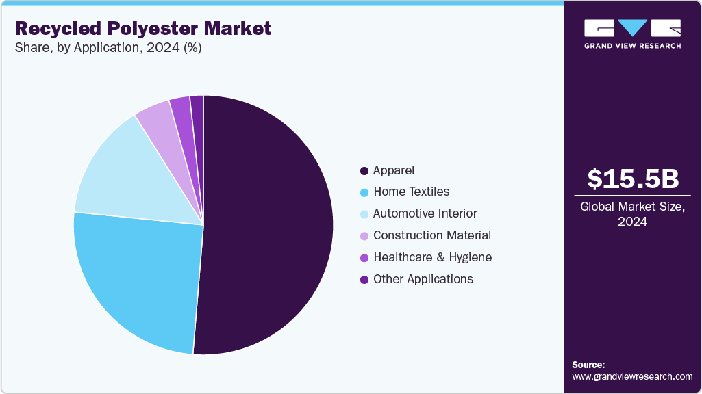 b. Apparel application dominated the recycled polyester market with a revenue share of 51.32% in 2024, driven by global fashion brands’ commitment to reducing their carbon footprint and reliance on virgin synthetic fibers.