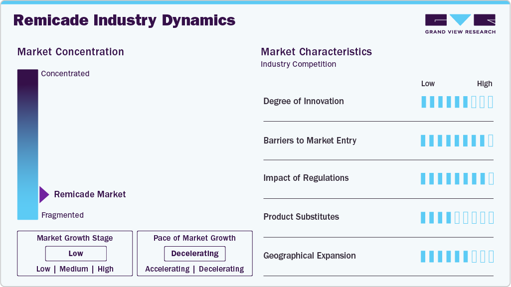 Evolving healthcare policies, reimbursement models, regional biosimilar acceptance variations, and biologic therapy innovations are expected to shape the remicade's market dynamics. There is a growing competition from biosimilar versions and biological drugs developed by other manufacturers that closely resemble remicade. These biosimilars are generally priced lower than Remicade, making them a more cost-effective option for healthcare providers and patients. For instance, in March 2024, Celltrion launched Zymfentra, a biosimilar to Remicade in the U.S. market, marking a significant expansion of its regional product portfolio. Zymfentra received FDA approval, offering a more convenient and affordable treatment alternative. The availability of these alternatives has increased the pressure on market share, as both the cost factor and growing preference for biosimilars remain key influencers of treatment decisions.