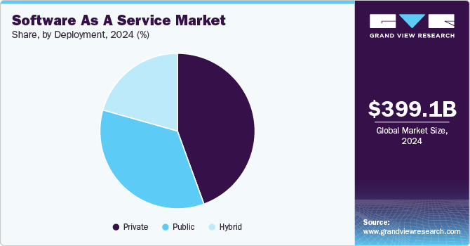 - Based on deployment, the private cloud segment accounted for the largest revenue share of the SaaS industry in 2024.
