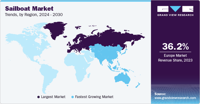Europe led the market in 2023 with a revenue share of 36.2%. Europe's extensive coastline and entrenched maritime heritage have developed a strong culture of recreational sailing, with plenty of opportunities to explore prime beaches and harness wind power to achieve a thrilling experience that attracts both experienced and amateur sailors. European shipbuilders have embraced innovation, including advanced materials, innovative navigation systems, and environmentally friendly propulsion methods, such as hybrid electricity. This not only increases productivity but is also in line with growing environmental consciousness. Renting a sailing yacht for holidays has become increasingly popular, offering a wide variety of sailboats, from traditional monohulls to modern multi-hull catamarans.