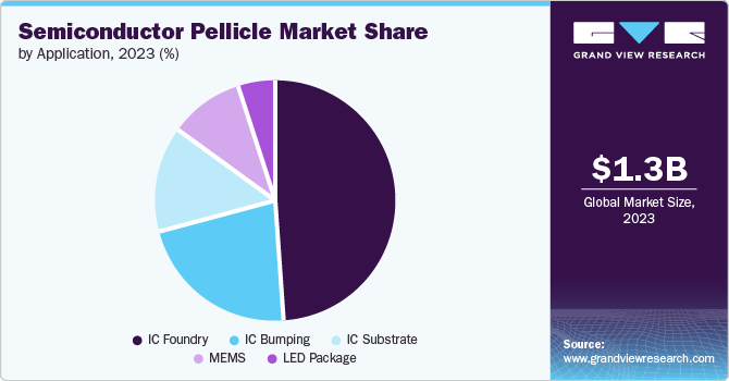 IC foundry accounted for the largest revenue share of 49.0% in 2023. The shift toward smaller process nodes and the widespread adoption of extreme ultraviolet lithography (EUV) are anticipated to fuel the demand for the product in IC foundry applications. Foundries manufacture increasingly advanced integrated circuits (ICs) for a variety of industries, including automotive, AI, and telecommunications, ensuring the highest yield and reducing defects becomes critical. Pellicles play an essential role in protecting the photomasks used in the lithography process from contamination, which can lead to costly defects and lower yields. These factors are expected to boost the demand for the product in IC foundry applications.