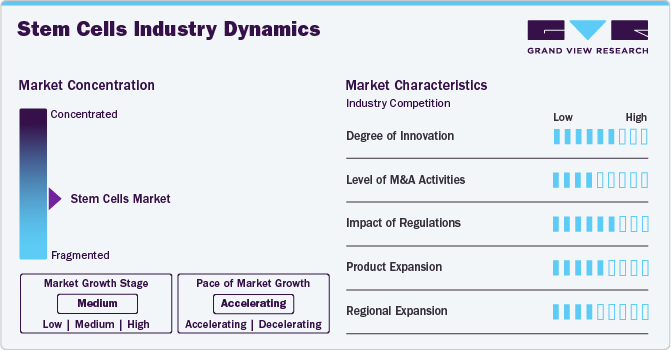 The market has moderate levels of product and regional expansion. The increase in market expansion pace has led to the availability of stem cell technologies to local healthcare providers and researchers which has led to advancements in personalized medicine, tissue engineering, and therapeutic applications of stem cells. This factor is expected to boost the market growth in the near future.