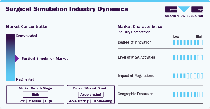 The degree of innovation in the surgical simulation industry is high. This is attributed to the advancements in VR, artificial intelligence, and haptic feedback. This technology offers realistic, risk-free training environments for medical professionals, enhancing skills and precision. For instance, in November 2023, Ethicon, a Johnson & Johnson MedTech company, introduced an AI-driven Surgical Simulation Platform designed to enhance skill development for current and future surgeons at the American Association of Gynecological Laparoscopists Global Congress. This technology utilizes artificial intelligence and augmented reality for training, offering real-time data and actionable feedback.