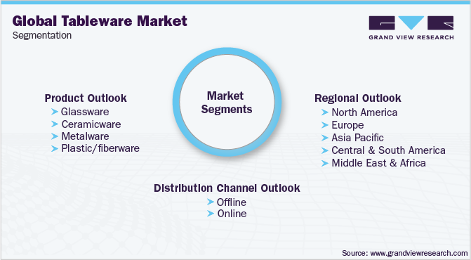 Global Tableware Market SegmentationThis report forecasts revenue growth at the global, regional, and country levels and provides an analysis of the latest industry trends in each of the sub-segments from 2015 to 2025. For the purpose of this study, Grand View Research has segmented the global tableware market report on the basis of product, distribution channel, and region.