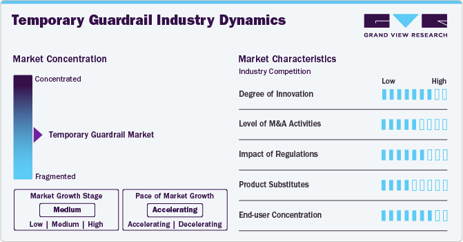 The market witnesses’ internal substitutes in terms of raw materials such as steel and wood. However, the durability and strength of temporary steel guardrails are expected to increase their demand over the years. Furthermore, there are a large number of manufacturers and distributors of temporary guardrails in North America. In addition to this, the product exhibits low differentiation in terms of material type and production techniques. This leads to the high bargaining power of the buyers in the market.