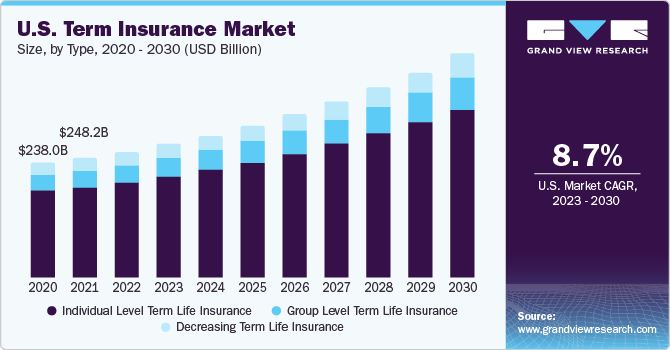 - The U.S. term insurance marketis expected to grow at a significant CAGR from 2024 to 2030.