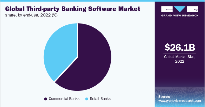 The risk management segment dominated the market in 2022 and accounted for a share of over 41.0% of the global revenue. Risk management application of third-party banking software enables banking institutions to improve the efficacy of risk assessment and aids in mitigating losses. The rising incidences of security breaches and strict regulatory compliances, also the advancements in the Internet of Things (IoT), are expected to further propel the growth of the segment.