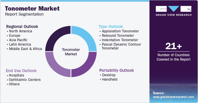 This report forecasts revenue growth at global, regional, and country levels and provides an analysis of the latest industry trends in each of the sub-segments from 2018 to 2030. For this study, Grand View Research has segmented the global tonometer market report based on type, portability, end use, and region.