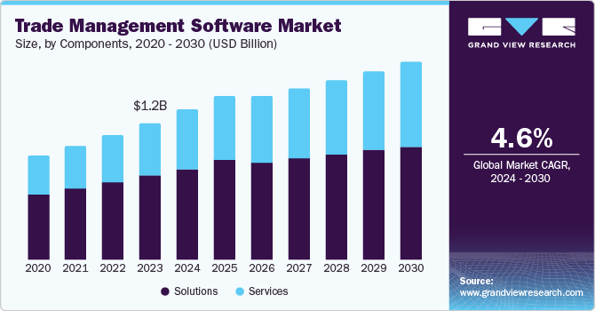 Trade Management Software Market (2024 - 2030) Size, Share & Trends Analysis Report By Components (Solutions, Services), By Deployment (On-premise, Cloud), By End-use, By Region, And Segment Forecasts