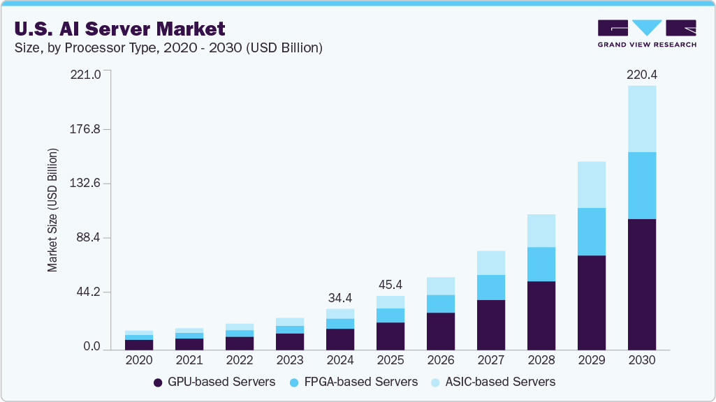 b. The U.S. AI server market is expected to grow at a compound annual growth rate of 37.1% from 2025 to 2030 to reach USD 220.40 billion by 2030