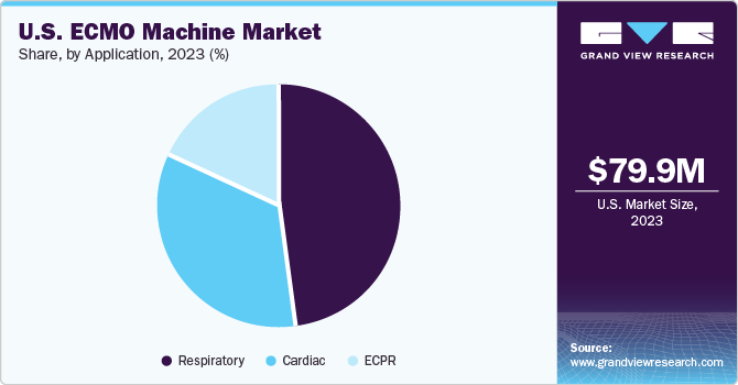 Respiratory applications dominated the market with a 48.0% share in 2023. The significance of ECMO and the high prevalence of respiratory conditions will likely enhance the segment’s growth. ECMO serves as pulmonary support to perform efficient respiratory function in patients. This feature increases its demand and thereby boosts market growth.