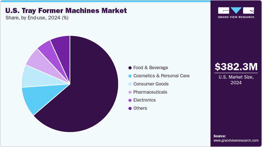 The food & beverage segment accounted for a share of 63.7% in 2024, owing to the need for efficient and hygienic packaging solutions. Tray former machines offer advantages such as precise tray formation, high-speed operation, and compatibility with a variety of tray materials, making them ideal for packaging a wide range of food products. The increasing demand for processed and ready-to-eat foods further propels the adoption of tray forming technologies.