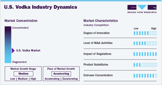The U.S. vodka industry faces competition from various substitutes, including other spirits, such as whiskey and tequila, and alternative beverages, such as wine and beer. However, vodka's versatility in cocktails and premium offerings continue to attract consumers seeking unique drinking experiences.