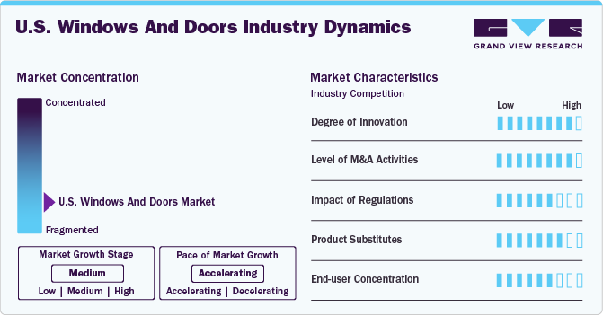 The U.S. windows & doors market is significantly influenced by stringent energy efficiency regulations and building codes, such as those outlined by the International Energy Conservation Code (IECC) and ENERGY STAR standards. These regulations drive manufacturers to innovate and produce products that meet or exceed energy efficiency requirements, pushing the market towards high-performance windows and doors.