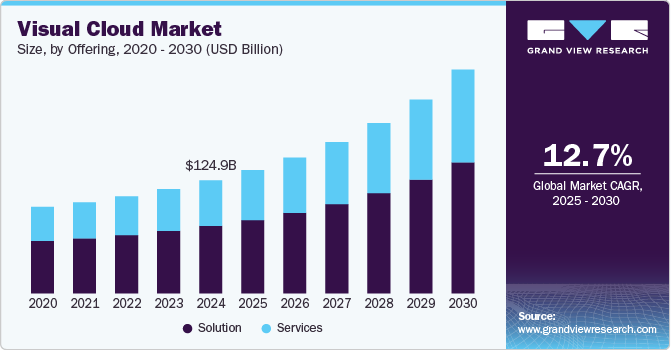 The global visual cloud market size was estimated at USD 124.93 billion in 2024 and is anticipated to reach USD 247.41 billion by 2030, growing at a CAGR of 12.7% from 2025 to 2030. The market is experiencing rapid expansion, driven by increasing demand for cloud-based solutions that support video streaming, gaming, AI-driven video analytics, AR/VR applications, and enterprise video solutions.