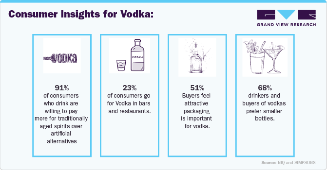 The tremendous growth of the vodka industry offers manufacturers a lucrative opportunity. Packaging and labeling play a crucial role in vodka sales. Manufacturers are recommended to encourage consumers to focus on the flavor of their alcohol. Lowering the price of vodka helps consumers consider it a luxury that anyone and everyone can afford. A well-established distribution channel is expected to improve market penetration.