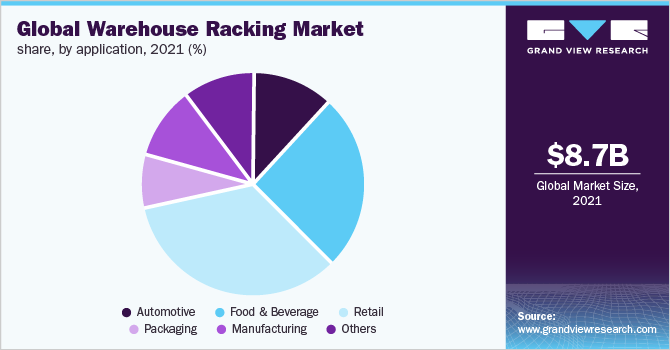 In addition, it also helps in minimizing the overall time. Expansion of various application industries, such as automotive, manufacturing, retail, and food & beverage, across the globe, is projected to boost product demand. Rising demand for warehouse space to store and gain easy access to products is anticipated to propel the need for optimizing the warehouse space via racking systems. The warehouses with planned and improved racking spaces help in saving costs. The availability of large storage spaces allows for ordering more products from the vendors in a single transaction. Furthermore, on ordering products in bulk quantities, suppliers generally offer discounts.