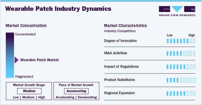 The wearable patch industry exhibits a high degree of innovation, driven by advancements in AI, flexible electronics, and biosensing technologies. These patches enhance chronic disease management, remote patient monitoring, and overall healthcare delivery, making them indispensable in modern medicine. For instance, in May 2024, Luxnine's BodyLog chest patch, honored with the CES 2024 Innovation Award, offers real-time vital signs monitoring, fall detection, and post-incident analysis. It tracks heart rate, oxygen levels, and respiration, aiding elderly care with continuous health oversight and lifestyle suggestions. In addition, it assesses incident severity and analyzes heart rate variability (HRV) after falls and emergencies.