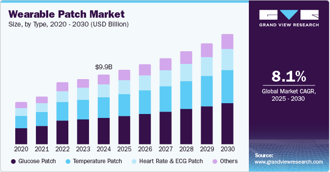 b. The global wearable patch market is expected to grow at a compound annual growth rate of 8.1% from 2025 to 2030 to reach USD 15.71 billion by 2030.
