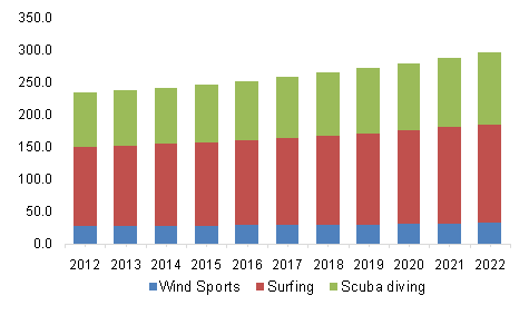 Surging income levels of the general people in select geographies and innovations in surfing and aligned product design & fabrication are expected to drive the industry growth. Growing emphasis on healthy lifestyles and continuous efforts to balance leisure and work have accentuated the demand for outdoor sports activities.