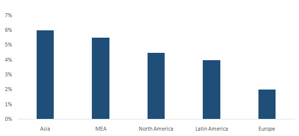 Construction Industry regional growth, 2015, (%)