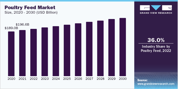 Poultry Feed Market 555.9 million tons in 2022 2.6% CAGR (2023-2030) |
