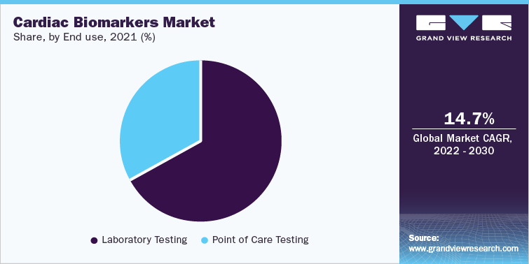 Laboratories are considered the largest end-use segment for this market in 2021 with revenue share of more than 65%. With the advent of technologically advanced homecare lateral flow assays, the reliance of clinicians on laboratories has significantly decreased. Cardiac biomarkers provided by Merck for ELISA assays are C - Reactive Protein (CRP); Troponin I; Brain Natriuretic Peptide (BNP); Cystatin C; Pregnancy-associated Plasma Protein A (dPAPPA); N Terminal (NT) BNP; myoglobin; Creatine Kinase MB Enzyme (CKMB); Troponin T; Fatty Acid Binding Protein; Myeloperoxidase; and insulin-like growth factor binding protein 4. Therefore, a rise in the availability of assays for diagnostic laboratories is expected to boost the market growth.