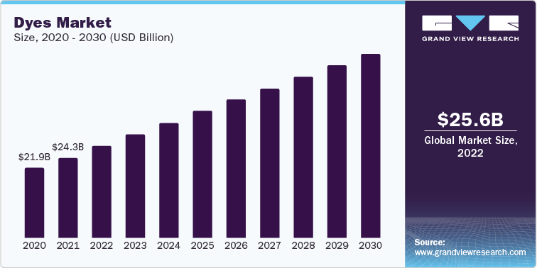 Dyes Market 555.9 million tons in 2022 2.6% CAGR (2023-2030) |