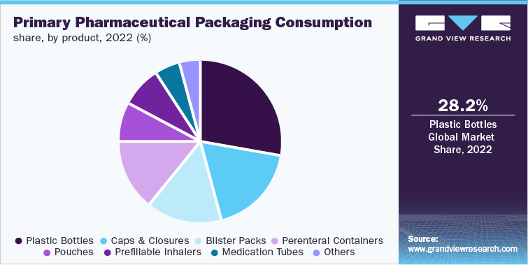 Plastic is light in weight, easy to mold, and considerably cheaper than metal and glass. Therefore, end-use companies majorly prefer plastic-based packaging products. Increasing demand for convenience, lightweight, and travel-friendly packaged pharmaceutical products from this industry is expected to augment the growth of the plastic & polymers material segment in the coming years.